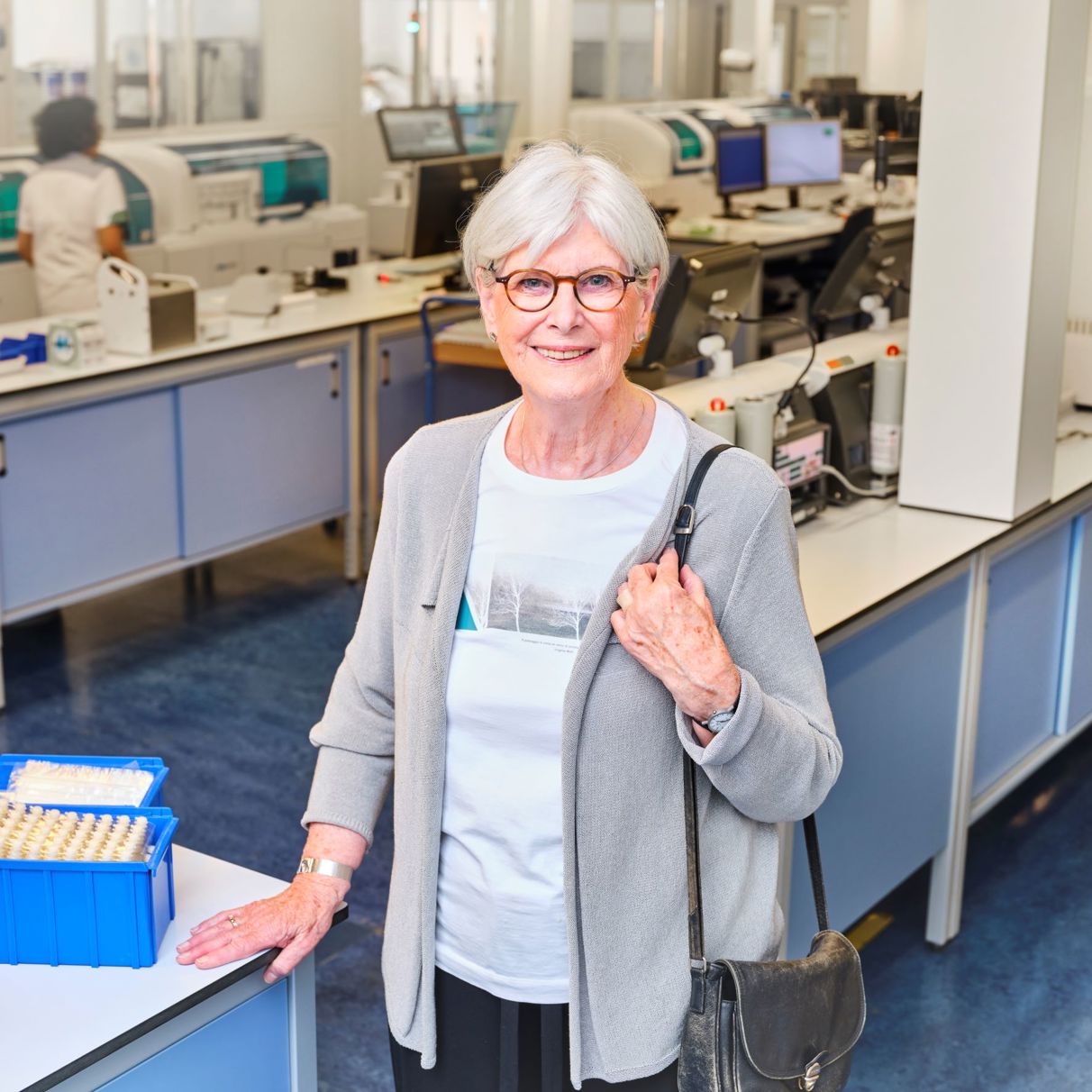 “Speciaal voor de foto was ik weer eens terug in het Anna. Dat was best lang geleden. Ik kreeg een rondleiding door het laboratorium. Wat is het hier veranderd zeg! Ik moest weer denken aan Joanetta en de andere zusters die me zo geholpen hebben na het ongeluk. Zij gaven me echt het gevoel dat ik hier thuishoorde.”