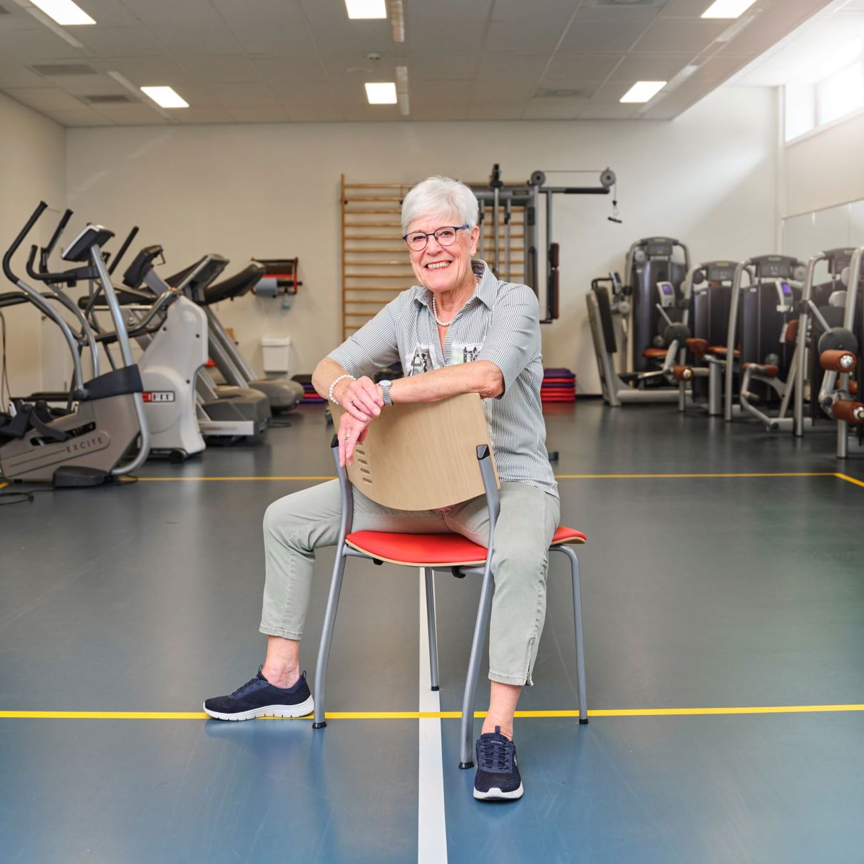 “De gymles was meestal in een kring. Alle zusters voor een eigen stoel. De meeste van hen waren al achter in de 70 of ouder. Ik begon altijd met spelvormen om op te warmen, zoals hoepels naar elkaar rollen en zachte ballen overgooien. Daarna meestal zittende oefeningen en aan het einde altijd weer iets speels. Bijvoorbeeld ballen rollen en dan proberen elkaar in te halen. Op de achtergrond meestal iets van mars- of stapmuziek, maar de zusters waren ook fan van James Last.”